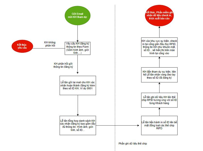 - Bước 1: Khách hàng đăng ký thông tin tham dự sự kiện, hội nghị…gồm các thông tin như hình ảnh, số CMND…..qua email
