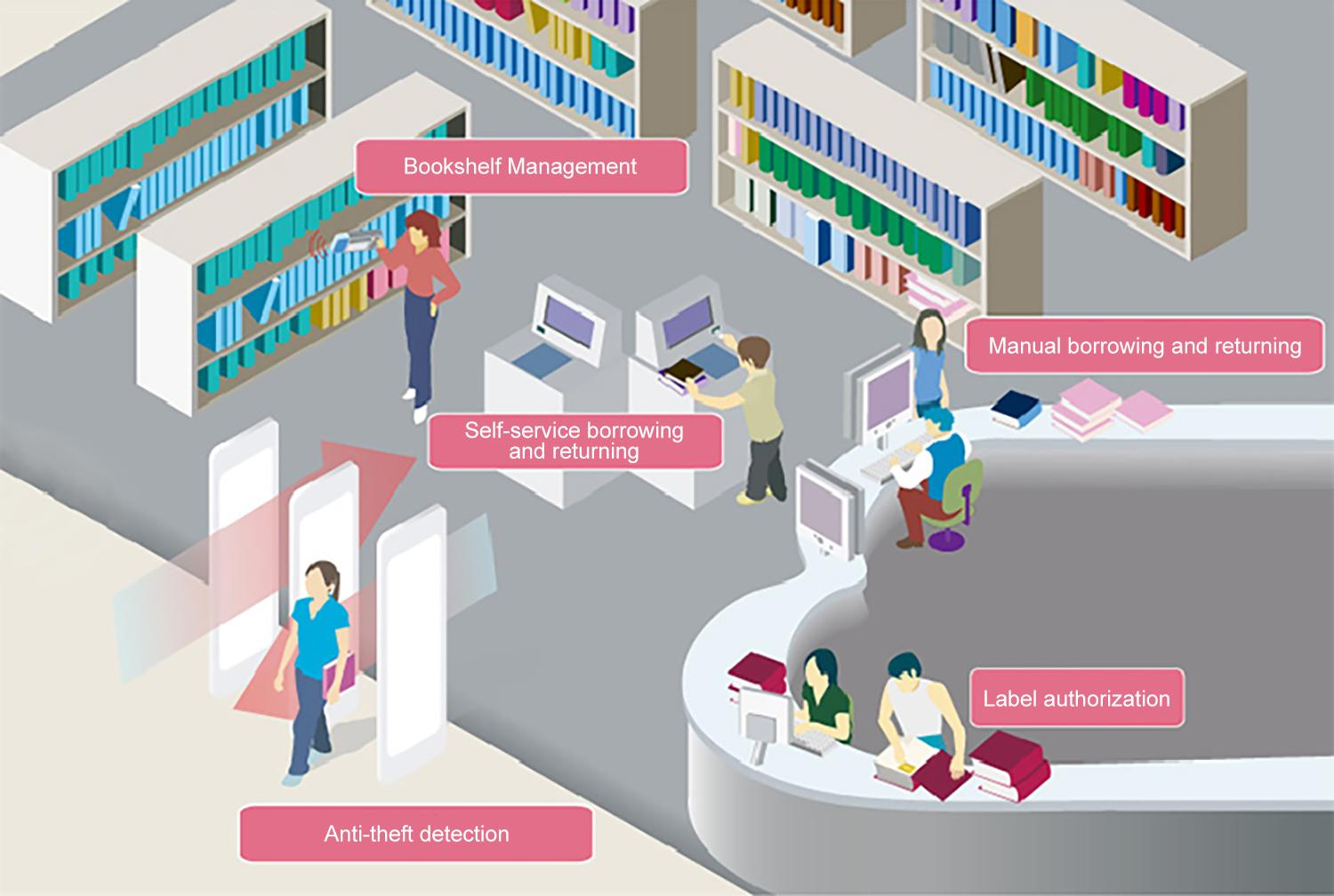 - Sử dụng đầu đọc thẻ RFID tại quầy đăng ký hoặc trạm mượn/trả sách tự động.