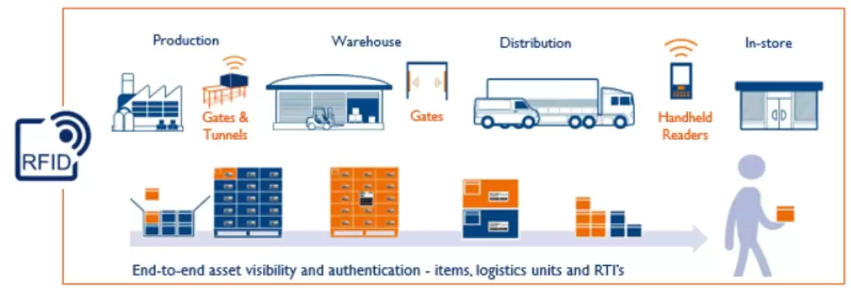 Thông qua việc sử dụng RFID, các doanh nghiệp có thể tạo ra một hệ thống theo dõi tài sản minh bạch và đồng bộ từ nhà cung cấp, kho hàng, đến các nhà phân phối và người tiêu dùng. Thông tin về số lượng hàng hóa, tình trạng sản phẩm hay vị trí của nó luôn được cập nhật liên tục, giúp các bộ phận trong chuỗi cung ứng có thể đưa ra quyết định nhanh chóng và chính xác.